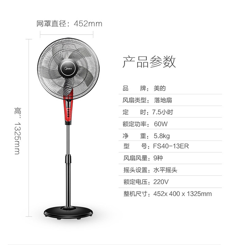 Электрический вентилятор Midea Home Home Desktop Пол вентилятор стоящий вентилятор вентилятор вентилятор вентилярный вентилятор опорная головка и ветроэнергетика 35 куб.
