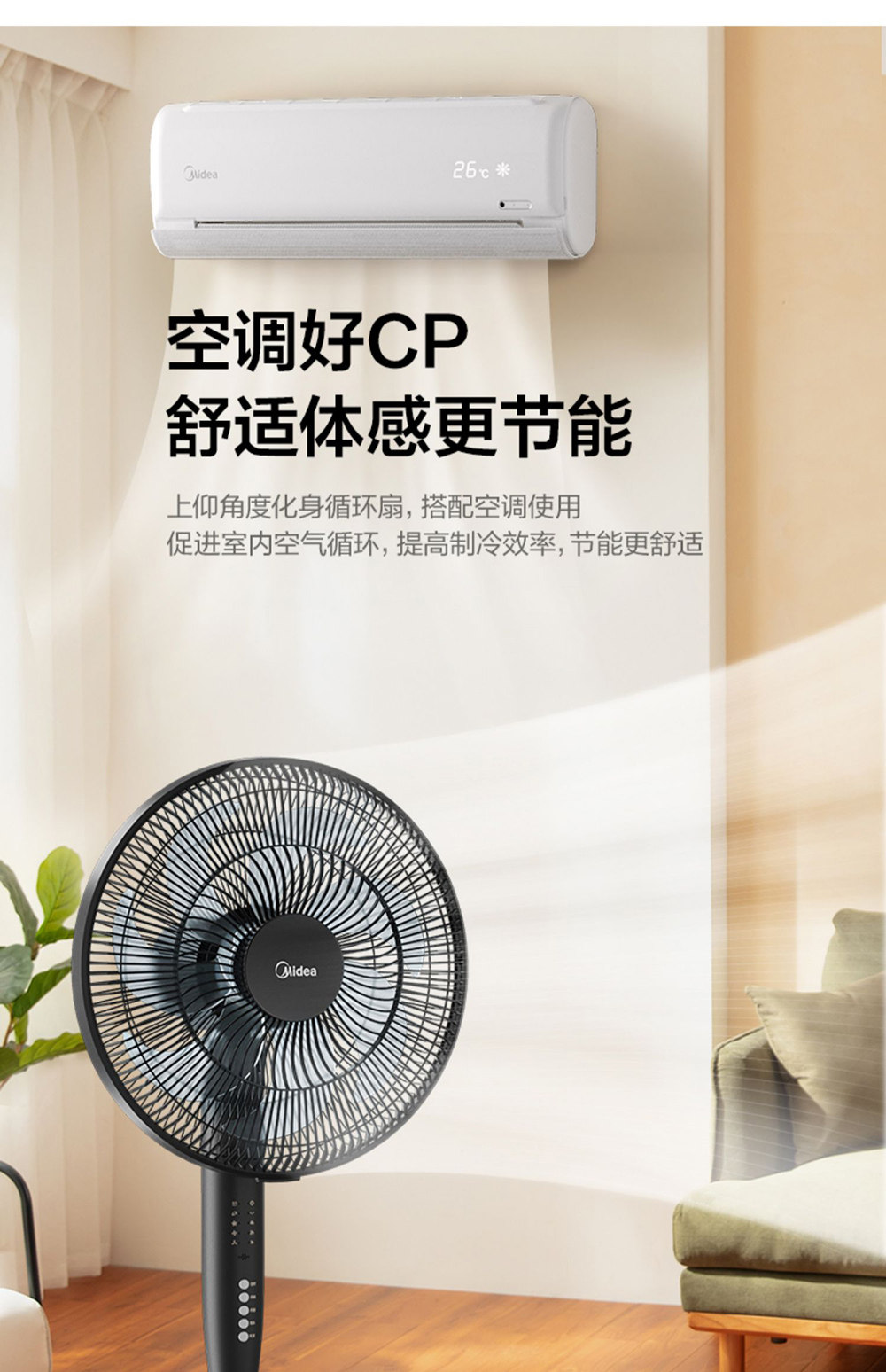 Midea Electric Fan Fan Fan Fensing Fansing Family Demote Dafeng Power -Power -мощный мощный вентилятор Qaye, способствующий энергии, вентилятор Qaye