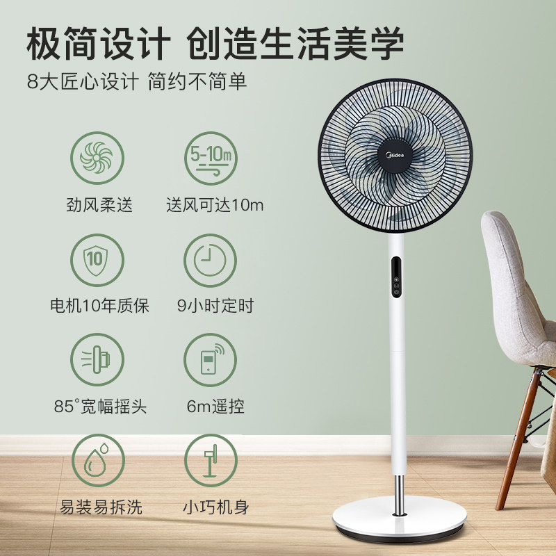 Midea Electric Fan Landing Fan Homeving Vertical Desktop Энергия -тихая энергия, сберегающая головка, вентилятор головы, большой ветер SAF30ACB