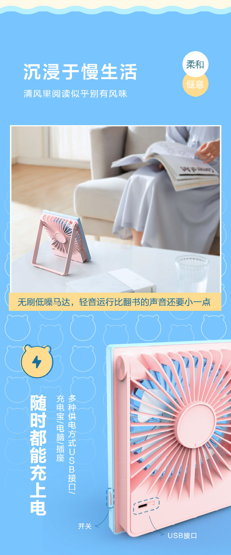 Little Bear Electric Fean USB маленький вентилятор маленький настольный офис безмолв