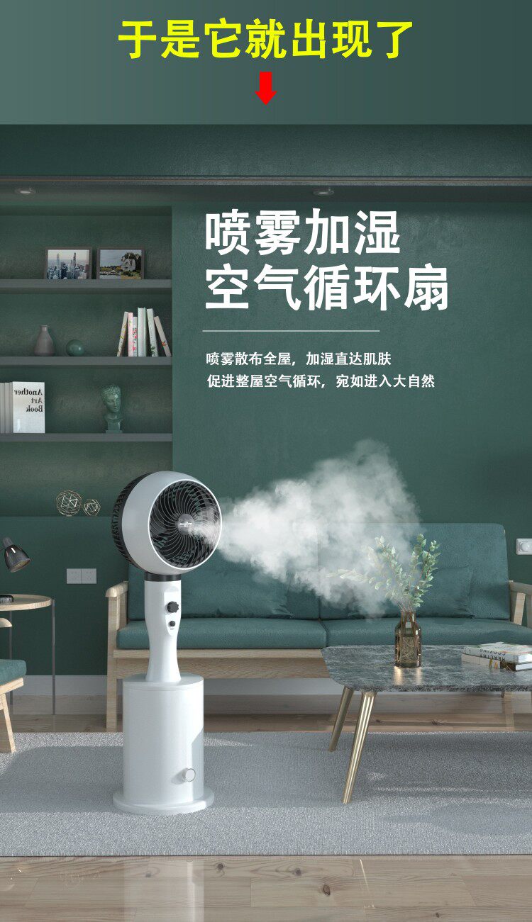 Вентилятор с турбонаддувом циркуляции, стоящий дома тихий холодный вентилятор Электрический вентилятор плюс мокрый охлаждение