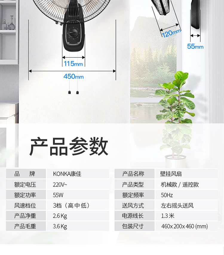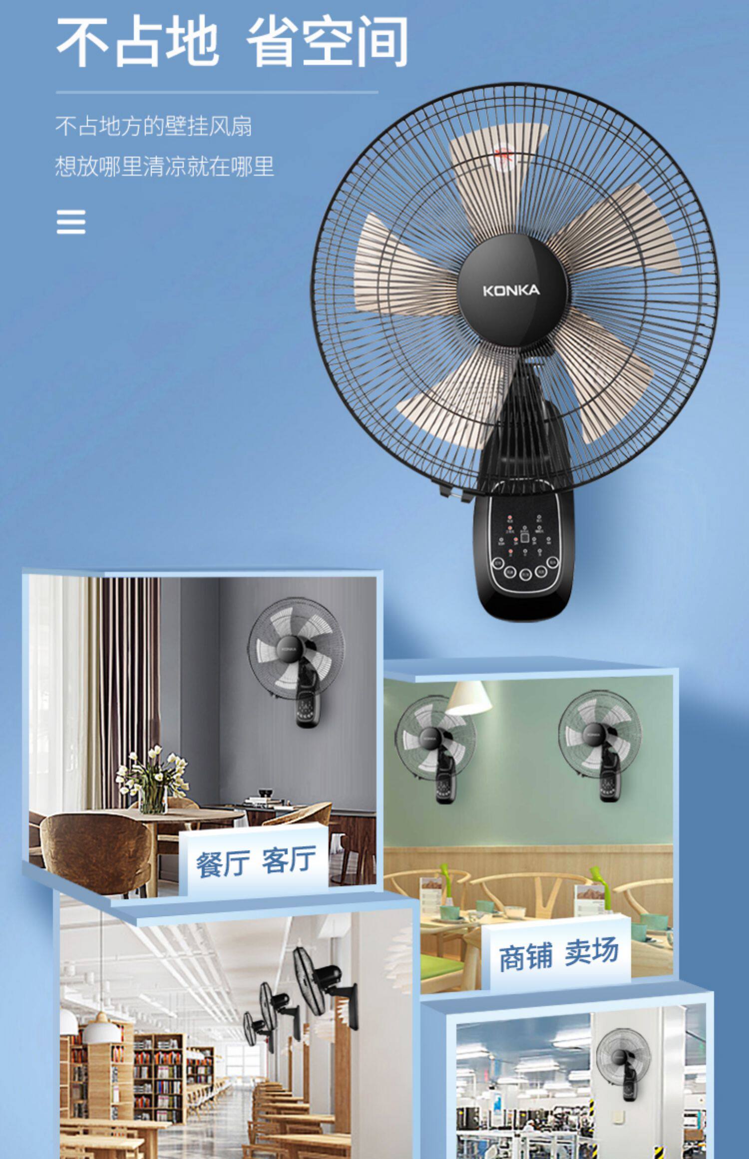 Стена вентиляционного вентилятора Конки -Стены -Электрический вентилятор с электроэнергией. Домохозяйство Коммерческое промышленное ветры -настенный ресторан, сжимающий настенный вентилятор на стену, электрический вентилятор