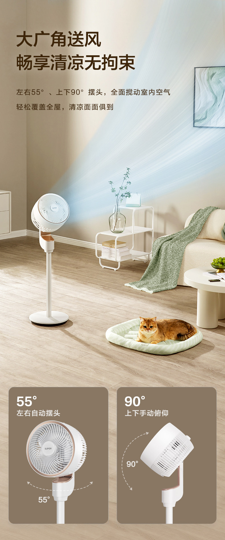 Вентилятор Supor Electric Fan Home Home Fan Fan Fan Fan Удушающий мощный статический бас спальня Новый воздушный вентилятор циркуляции