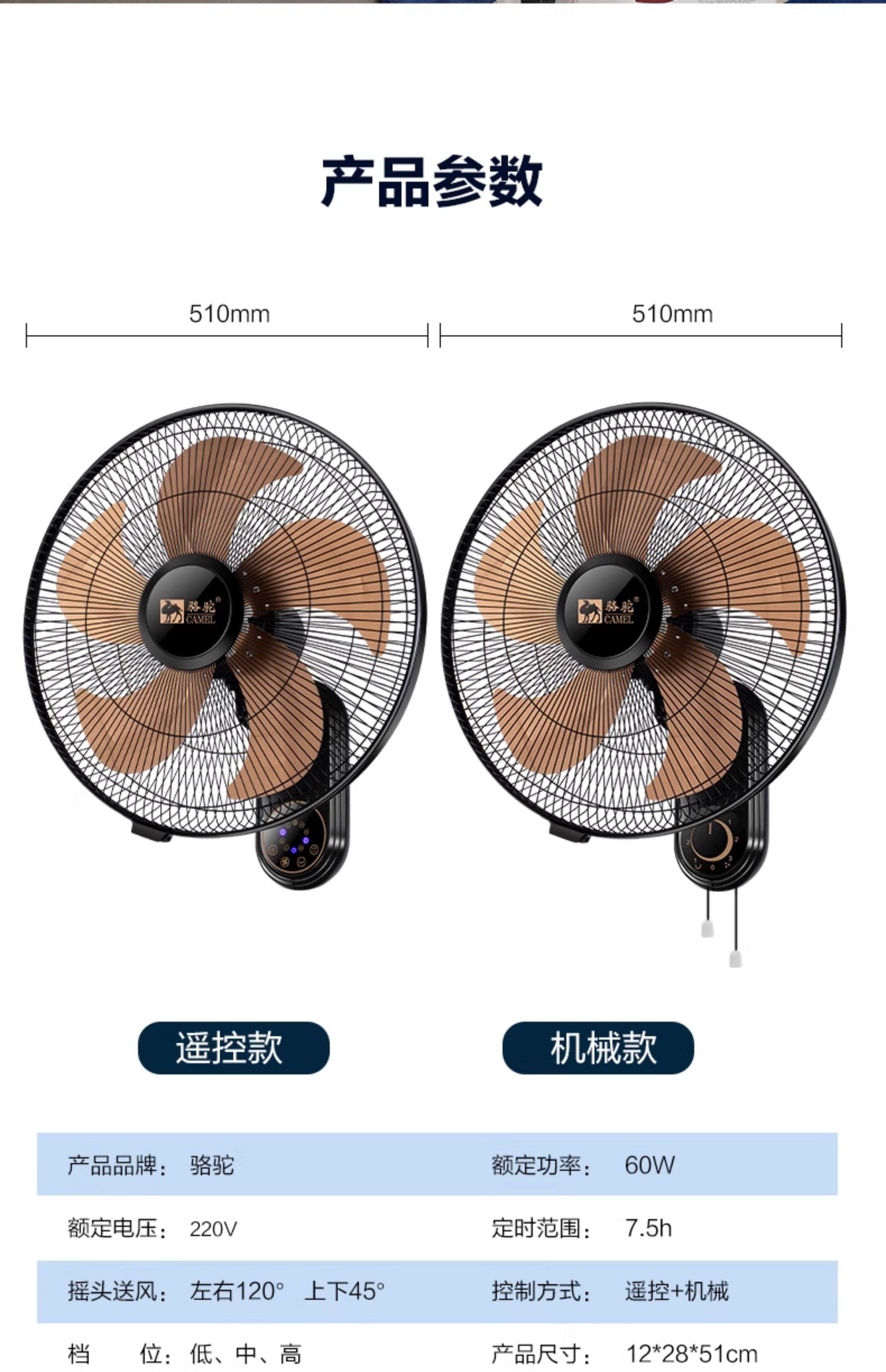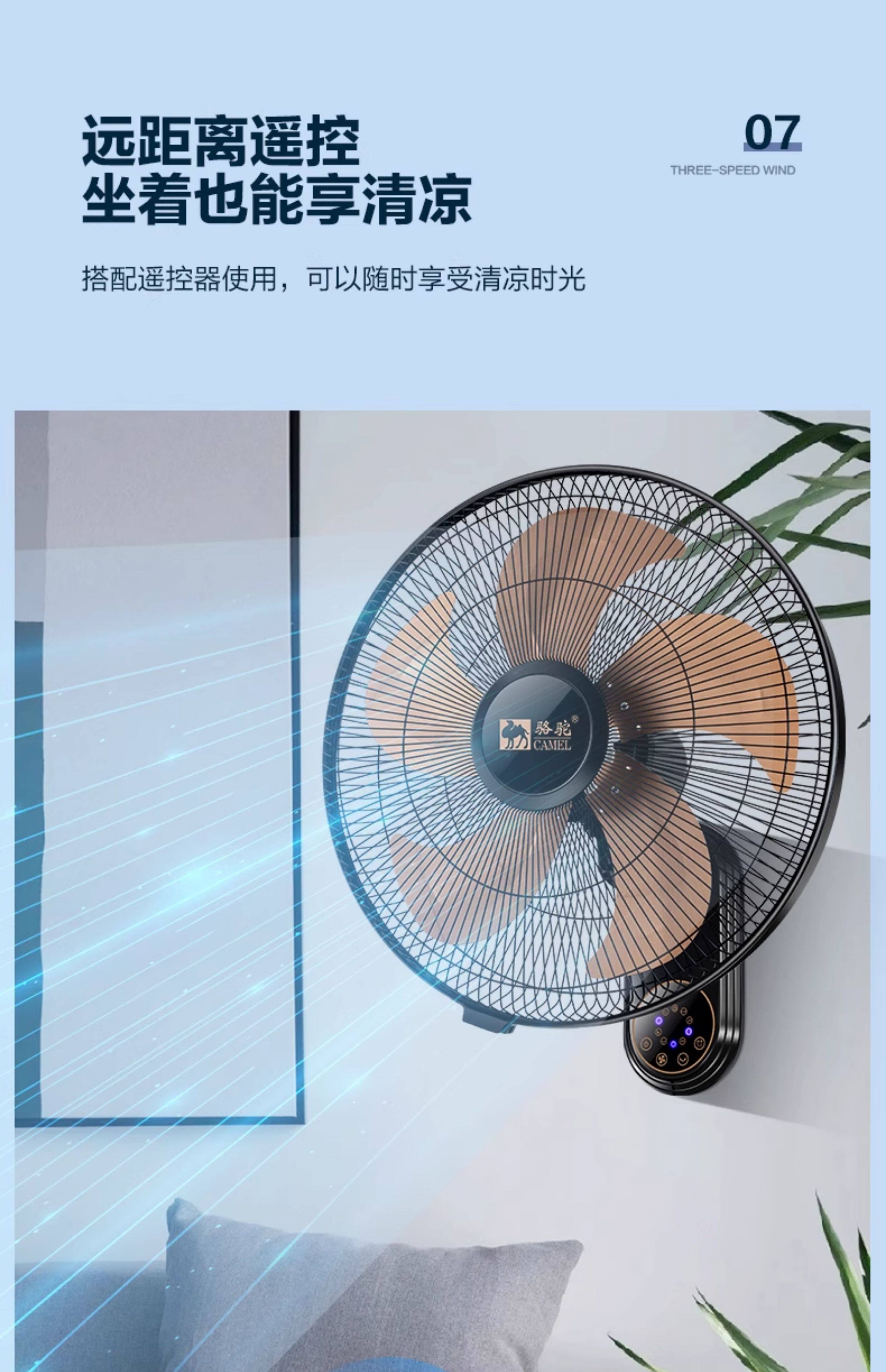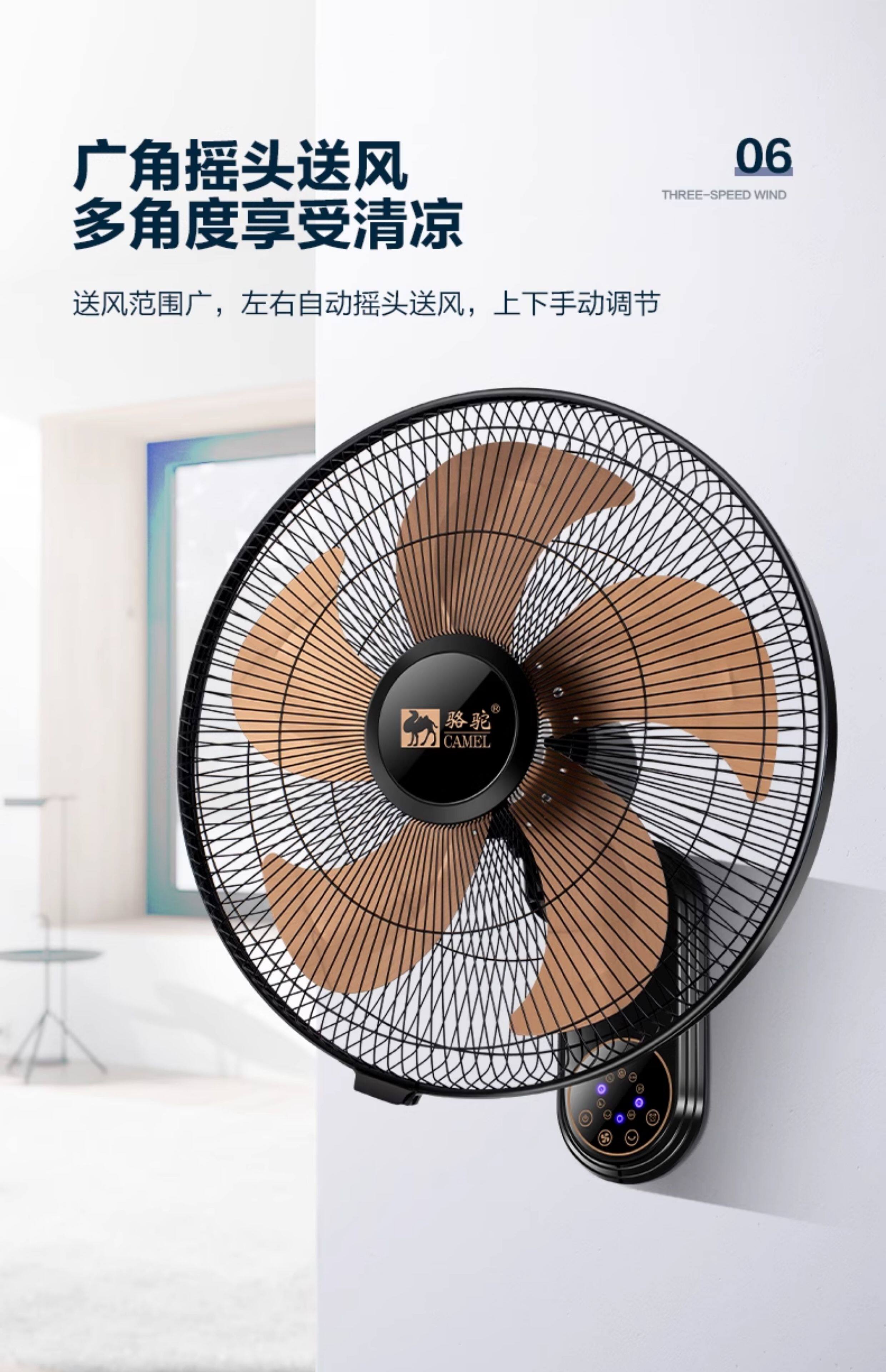 Стена вентилятора верблюда -стена -20 -килограммовая встряхивая головка Электрический вентилятор Pure Copper Super Light широко широко широкий объем воздуха Автоматический посадочный вентилятор