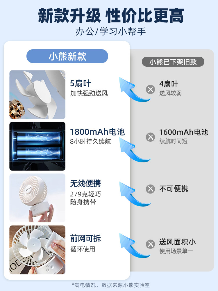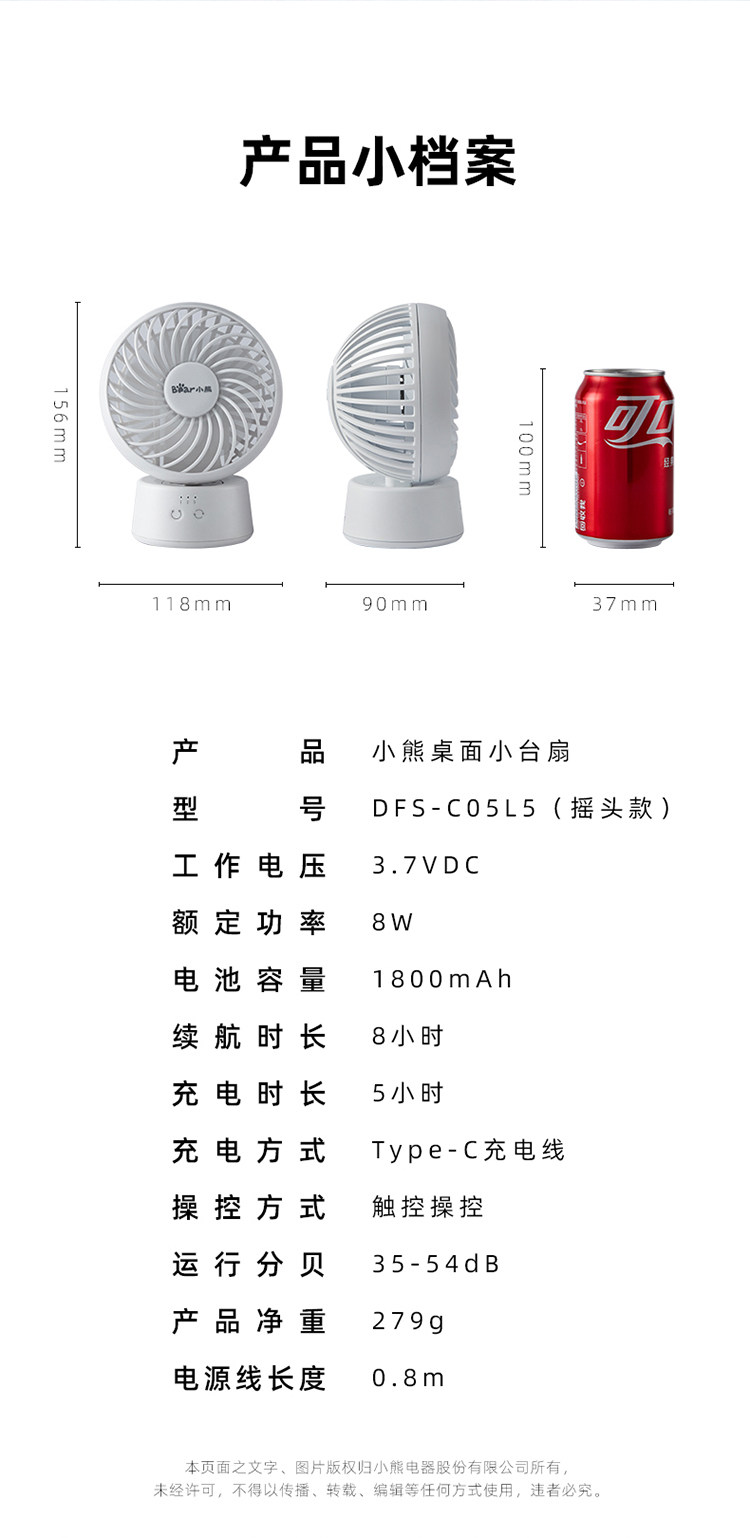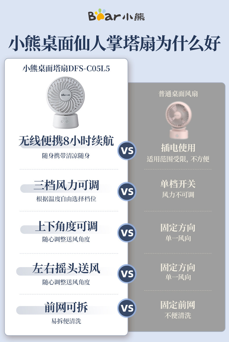 Bear Desktop Electric Fan Office Маленький мини -студенческий стол вентилятор беспроводной длинный срок службы батареи