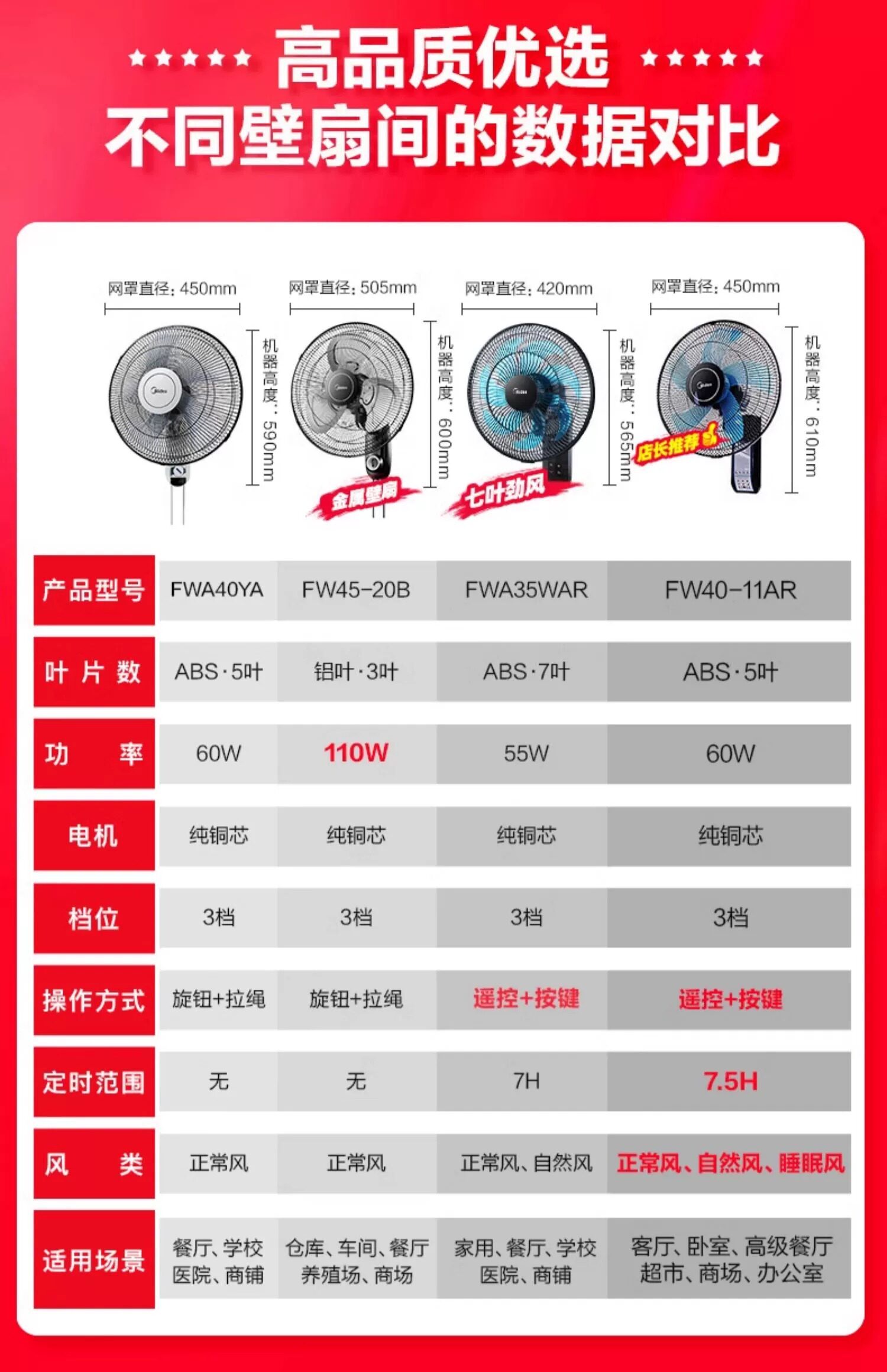 Настенный вентилятор, пульт для коммерческого использования, 18 дюймов, дистанционное управление