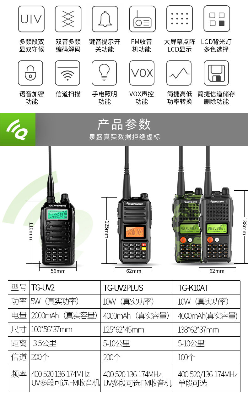 泉盛 Дорожная рация, высокая мощность, 10W, Кинг-Конг