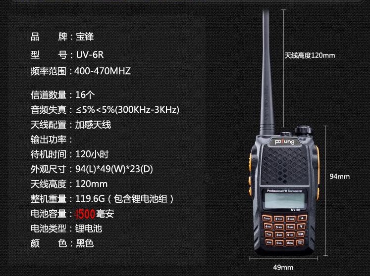 宝锋 BF-UV6R Intercom Civil Использование 1-50 километров, канадский эстафетный мини-мобильный телефон Baofeng 5R.