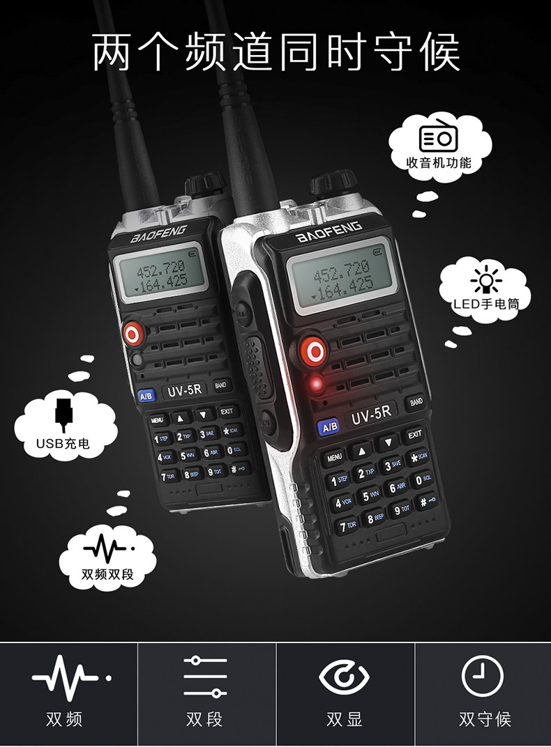 Баофенг BF-UV5R Диалог 5W Двойной двойной гражданский баофенг UV5R Трех поколений Ши ши 1-50 км FM