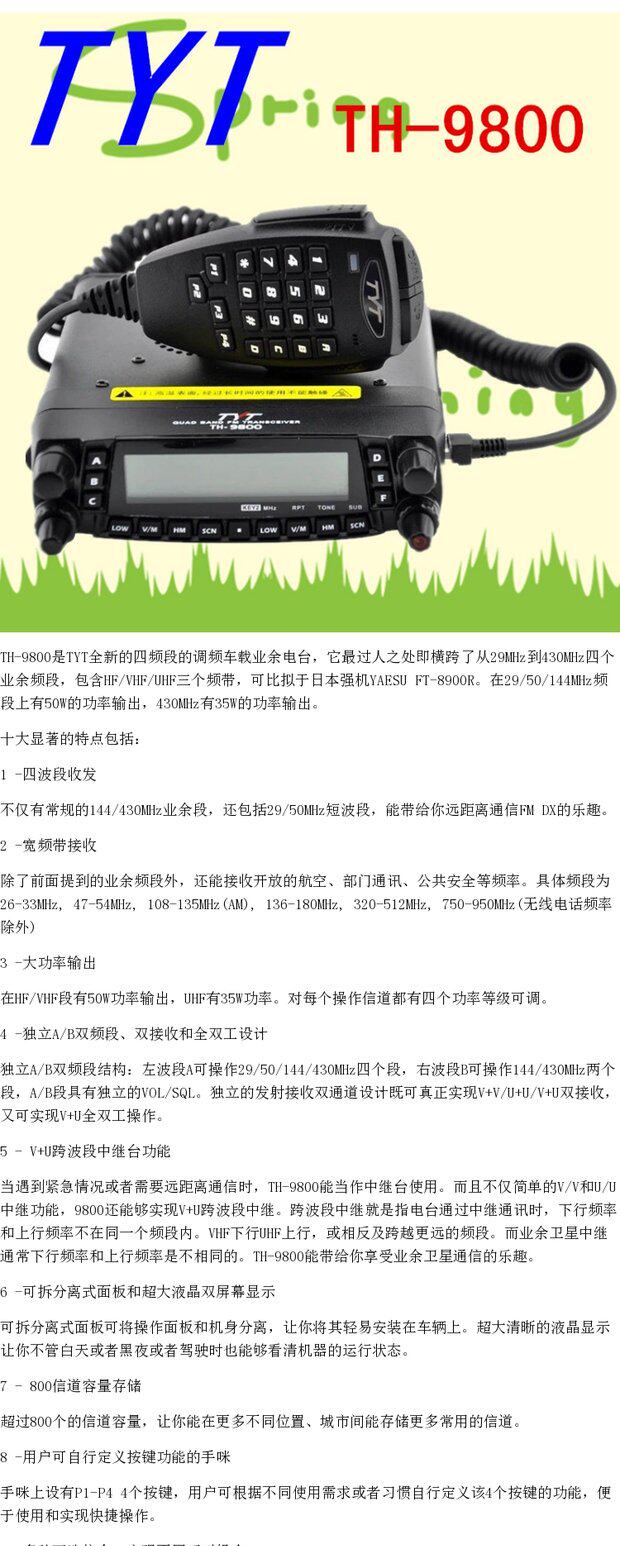 TYT TH-9800-первая четырехлоко эталона 29/50/144/430 радиостанции любительского транспортного средства на материке