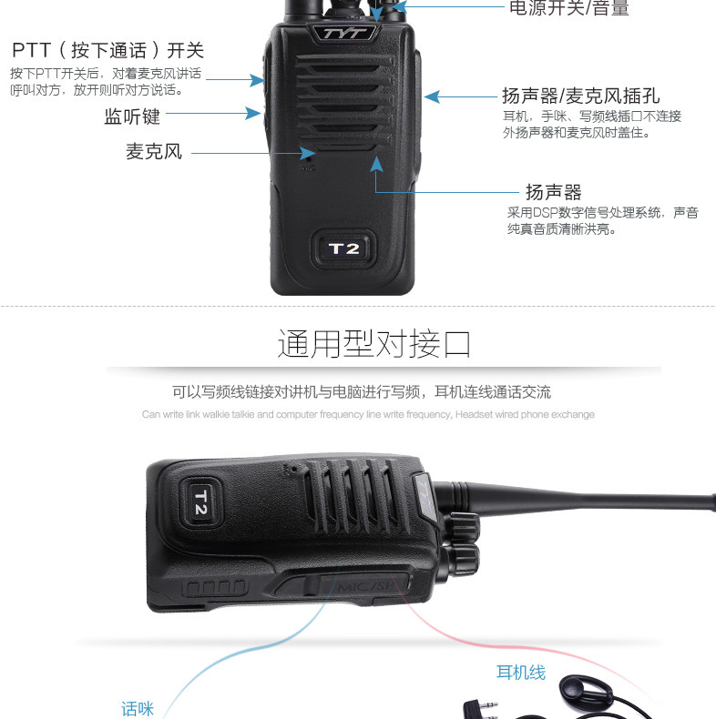 TYT TYT-T2 Intercom, гражданский 1-50 км 5W мощный сайт обработки отеля Intercom