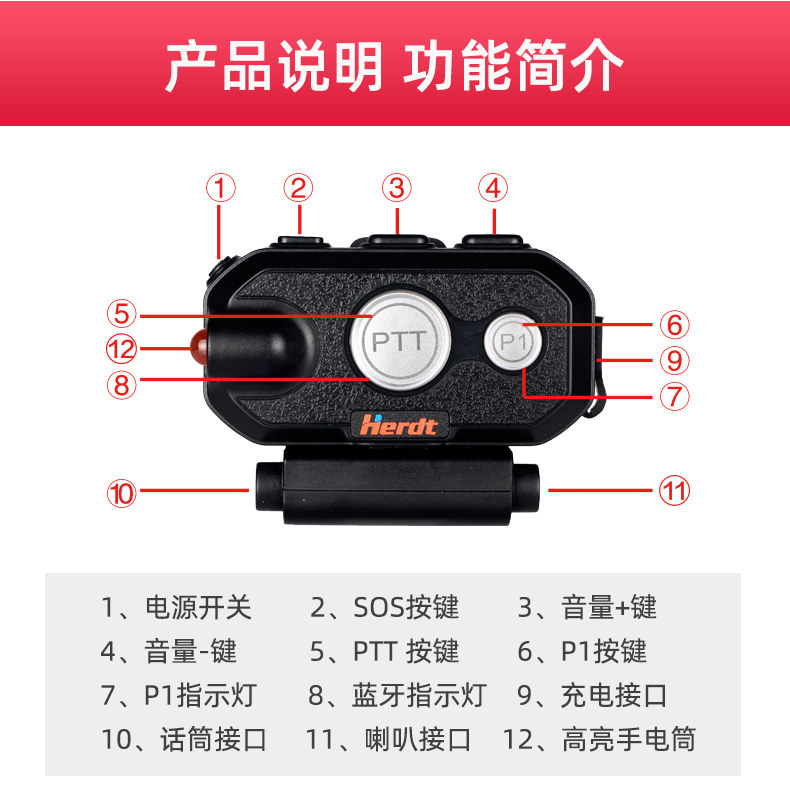 ¥68.00Walldt Herdt Motorcycle Hearset Hearset Bluetooth Pecheat Talk с водонепроницаемой беспроводной передачей клавиши