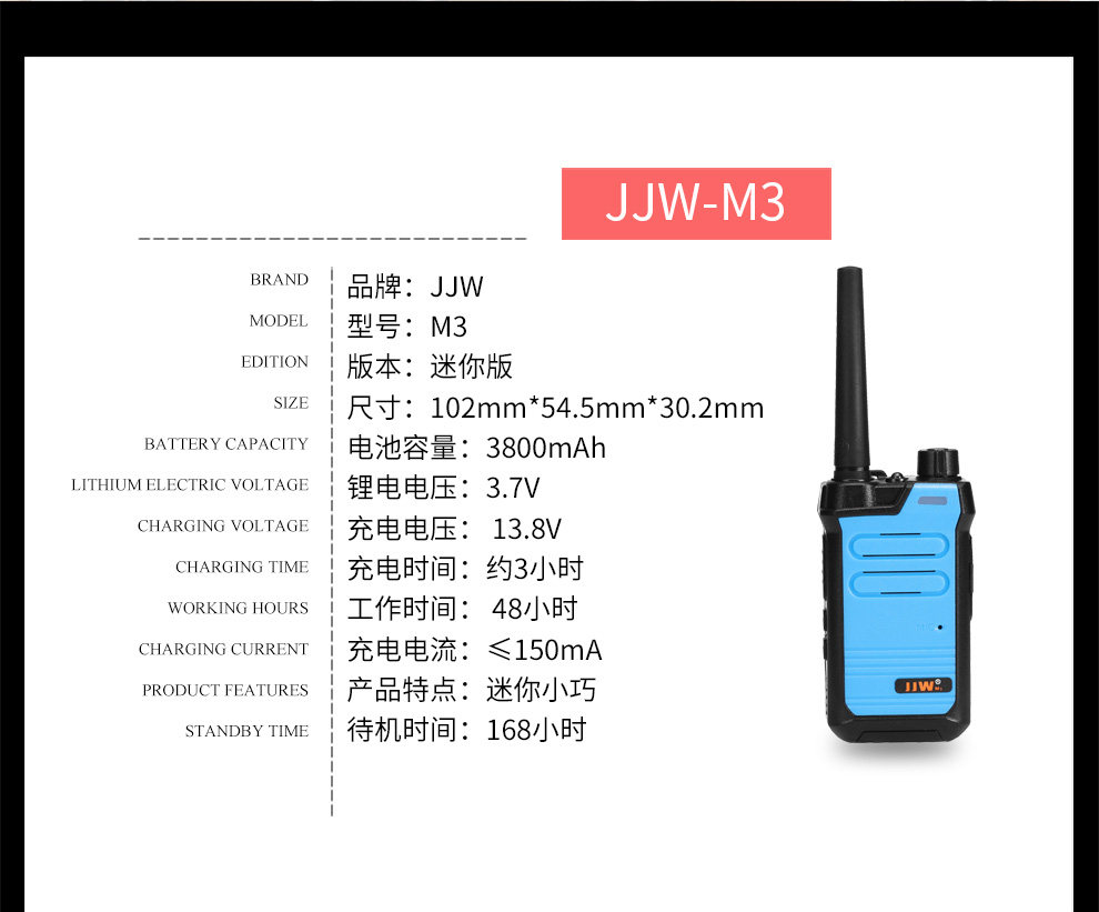 JJW-M3 Mini RMB 8W Мощный гражданский гражданский 1-10 км Ресторан Ресторан для волос беспроводной почерк