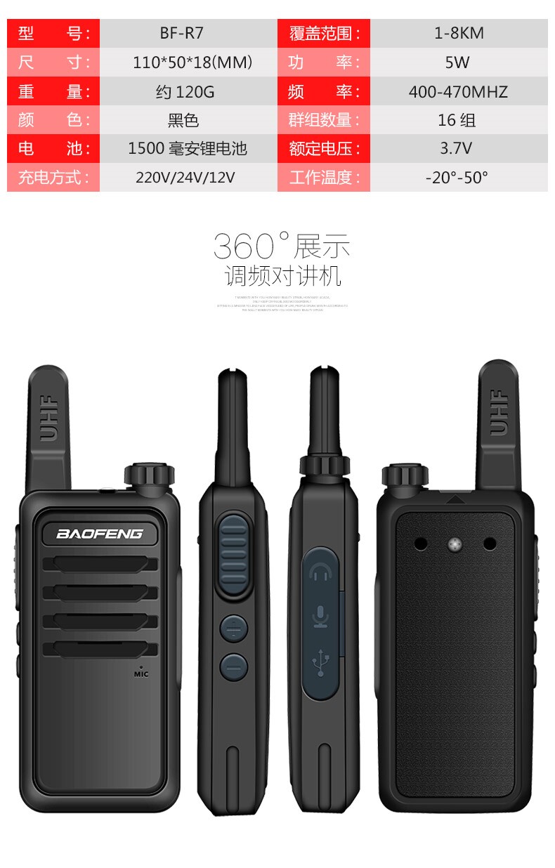 Baofeng BF-R7 Intercom Machine Mini маленькая световая рука, держащая на открытом воздухе, гражданская Wideline Baofeng Маленькая машина 50 пар