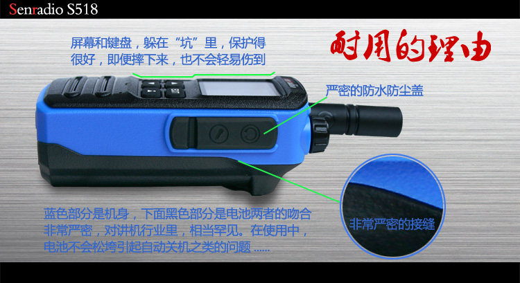 - Мобильный телефон защищен от пыли, воды и ударов, рация