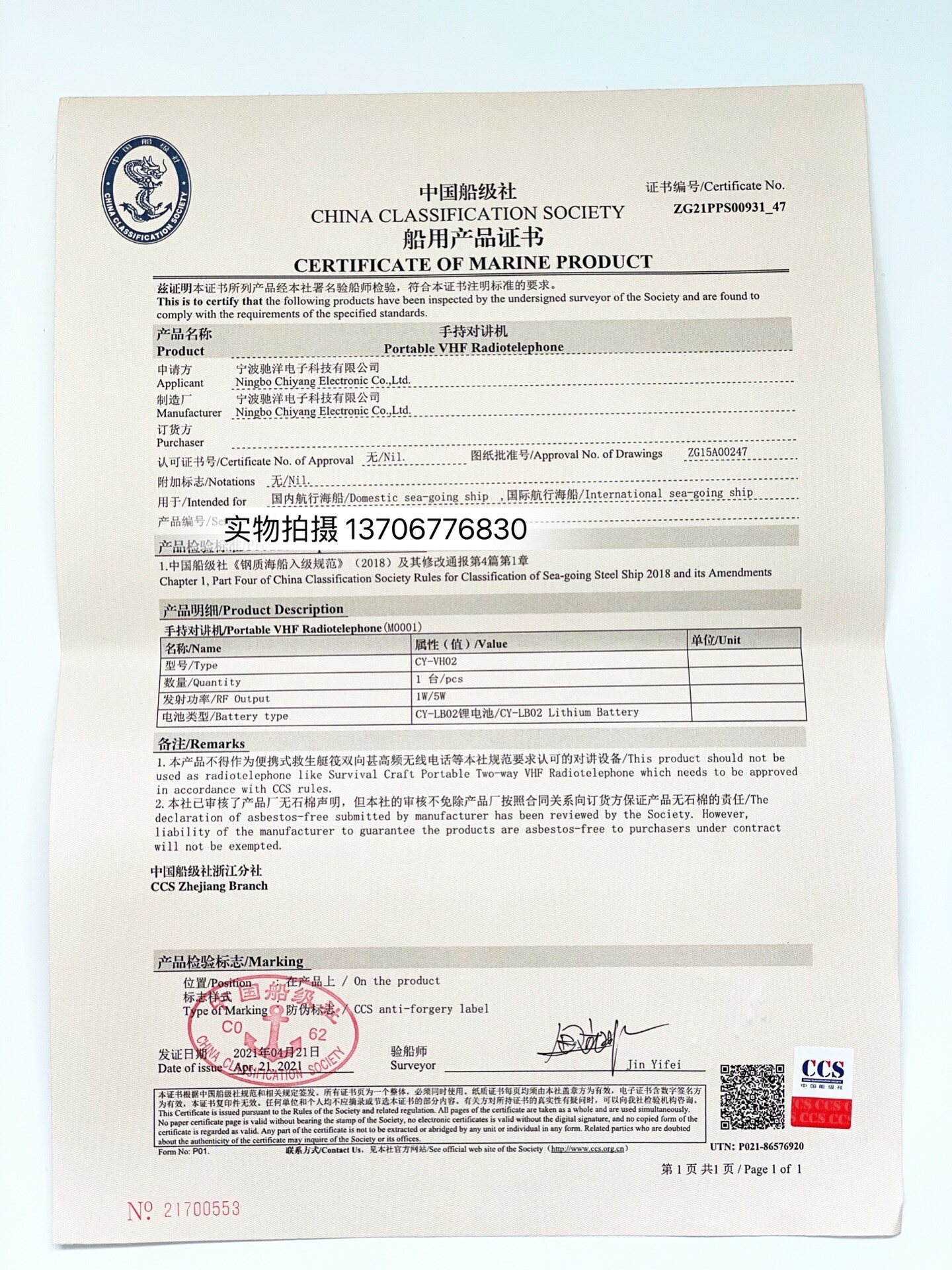 Морское портативное судно очень часто часто бываловое перезаряжаемое беспроводной телефон CCS CCS CCS Сертификат Ningbo Boyang