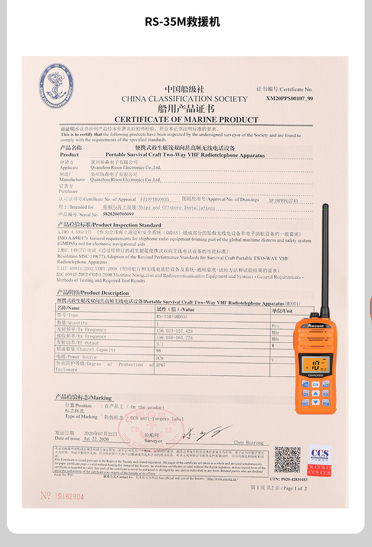 Руизен 35me транспортной машины водонепроницаемой водонепроницаемой и высокочастотной плавающей отрывки с взрывом RS-35M радиостанция CCS Сертификат проверки судов