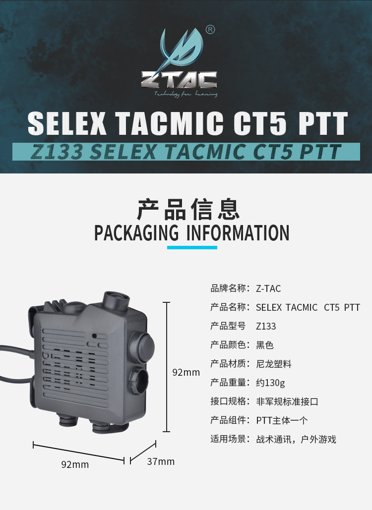Z-TAC Element CT5 Model Hearset/Of-The Dual Mode Cloading Кнопка запуска мобильного телефона PTT разъем