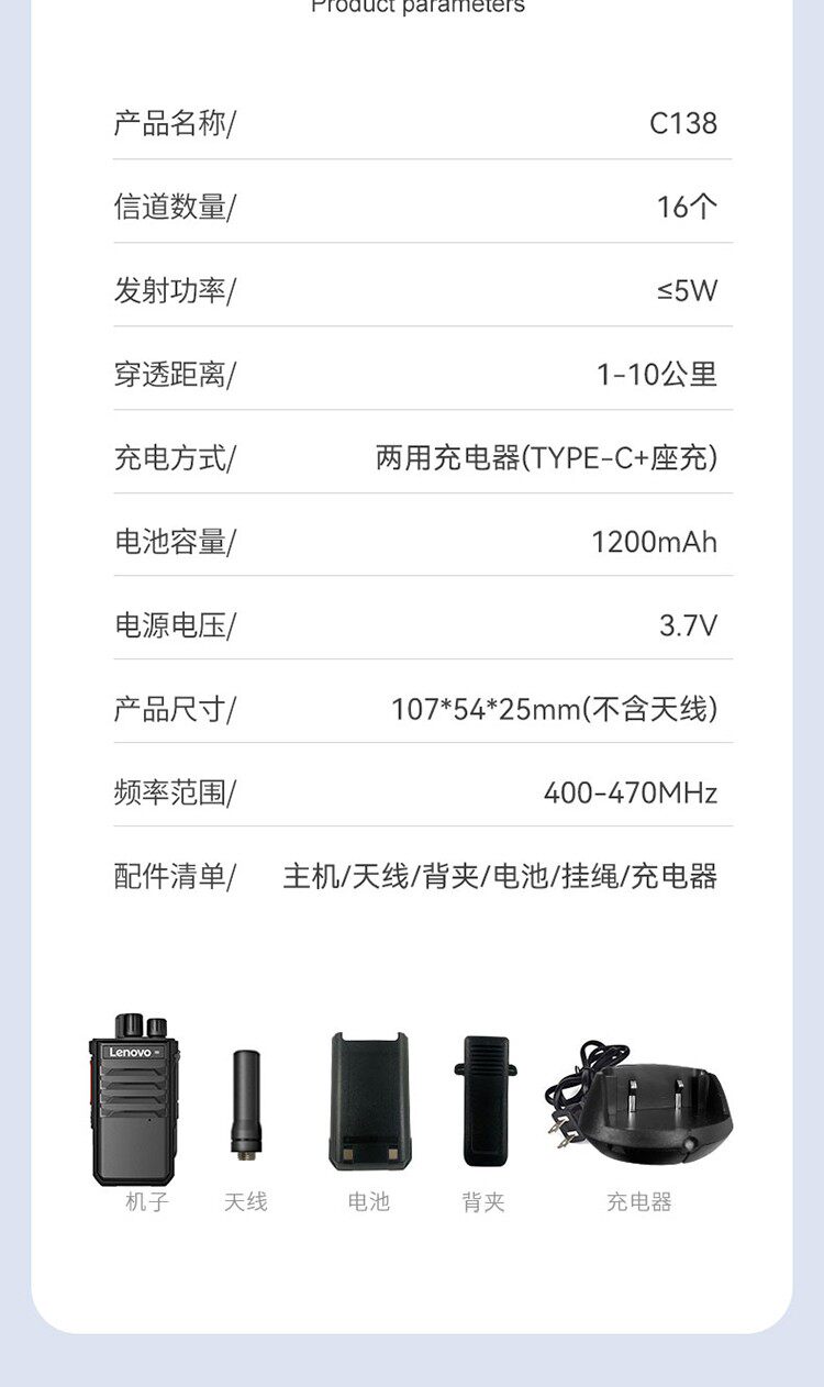 Lenovo C138plus walkie -talkie, один, автоматически, автоматически проникает на открытом воздухе с мини -хрупкими сайтами