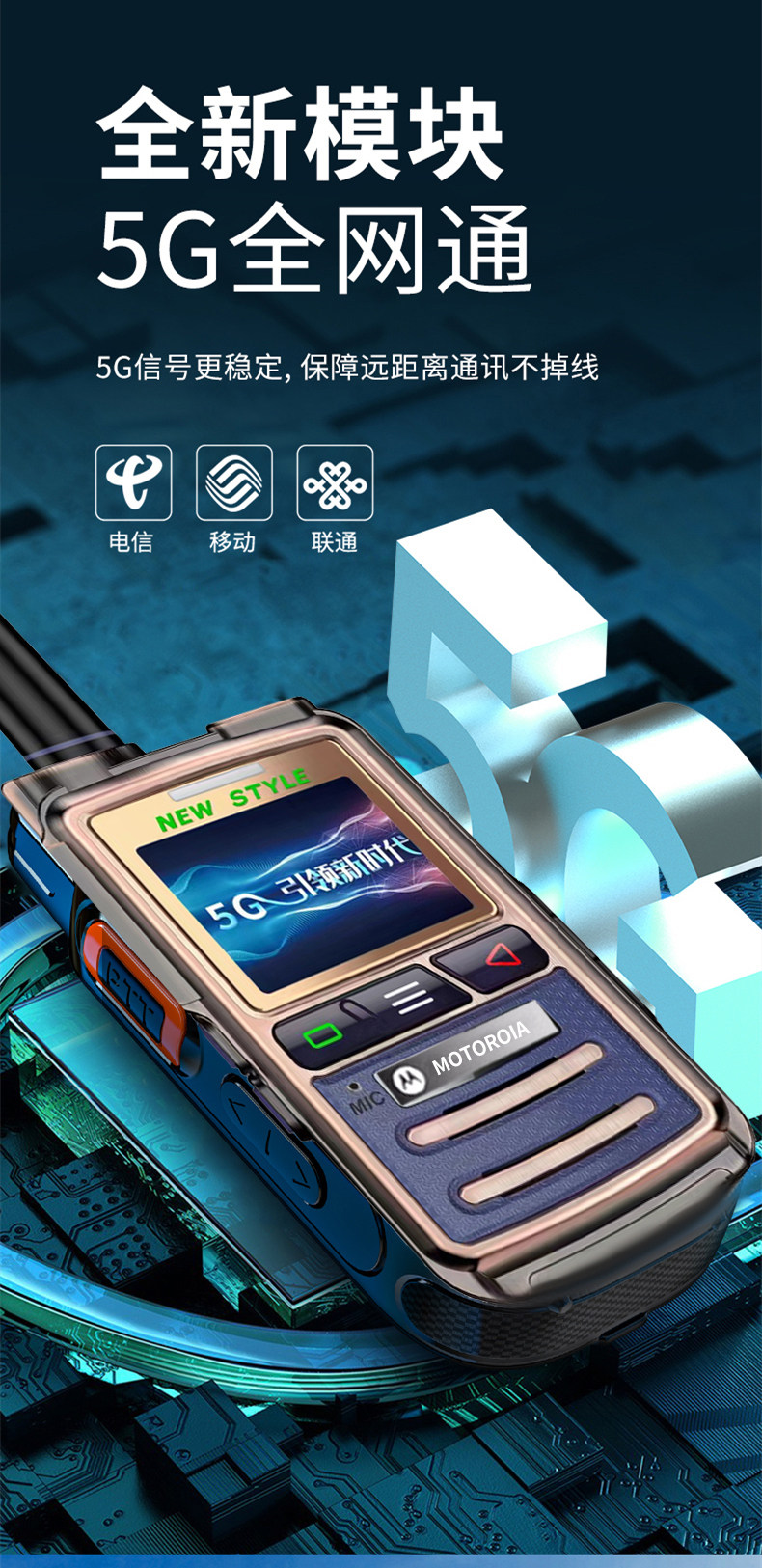 Межком Motorola -это длинная дистанция 5000 км национальная двойная мода 5G Общественная сетевая карта -в маленькой мини -портативной машине