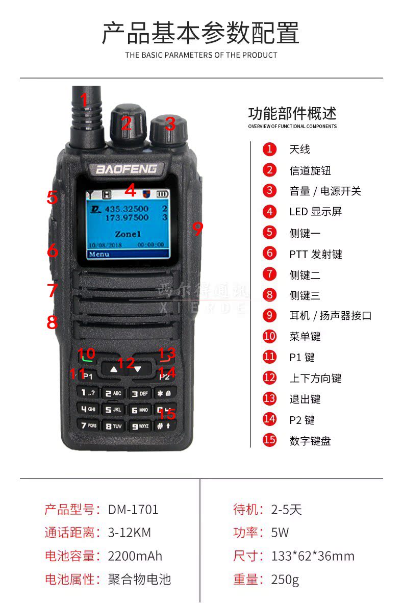 Baofeng DM-1701 Китайский цифровой интерком Двойной временной интервал DMR Мобильный телефон для самостоятельного вождения можно использовать для OpenGGD77