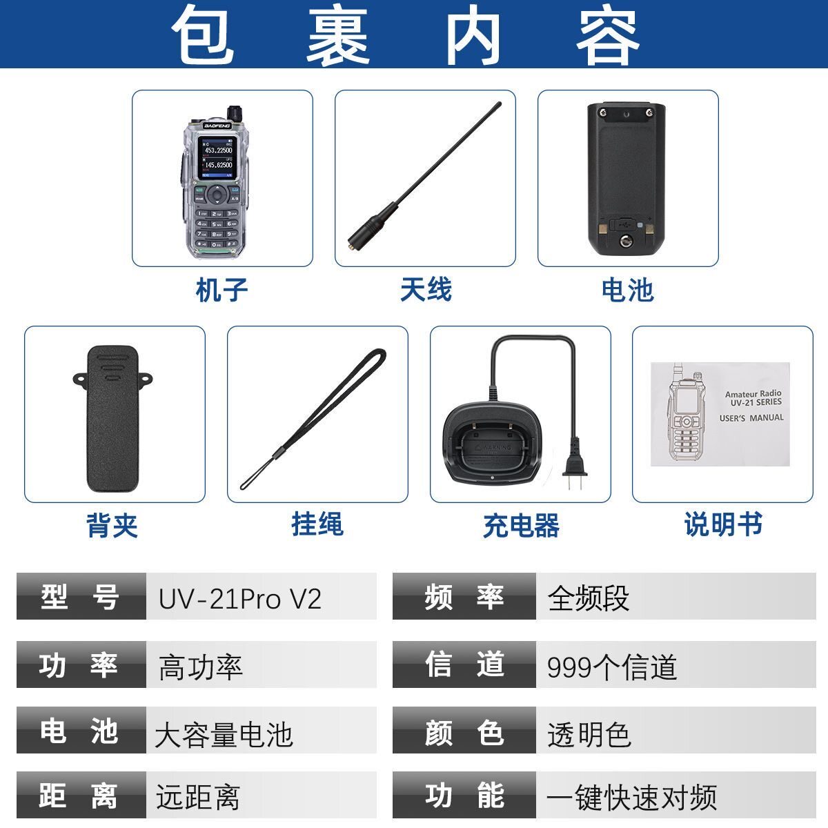 Новая рация Baofeng UV-21PRO FM с частотой одного щелчка, соответствующая гражданской уличной портативной радиостанции высокой мощности на большие расстояния