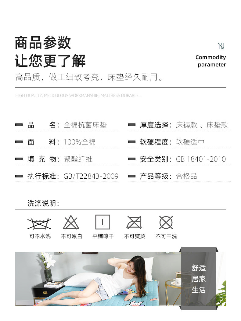 - Хлопковый дышащий нескользящий антибактериальный матрас