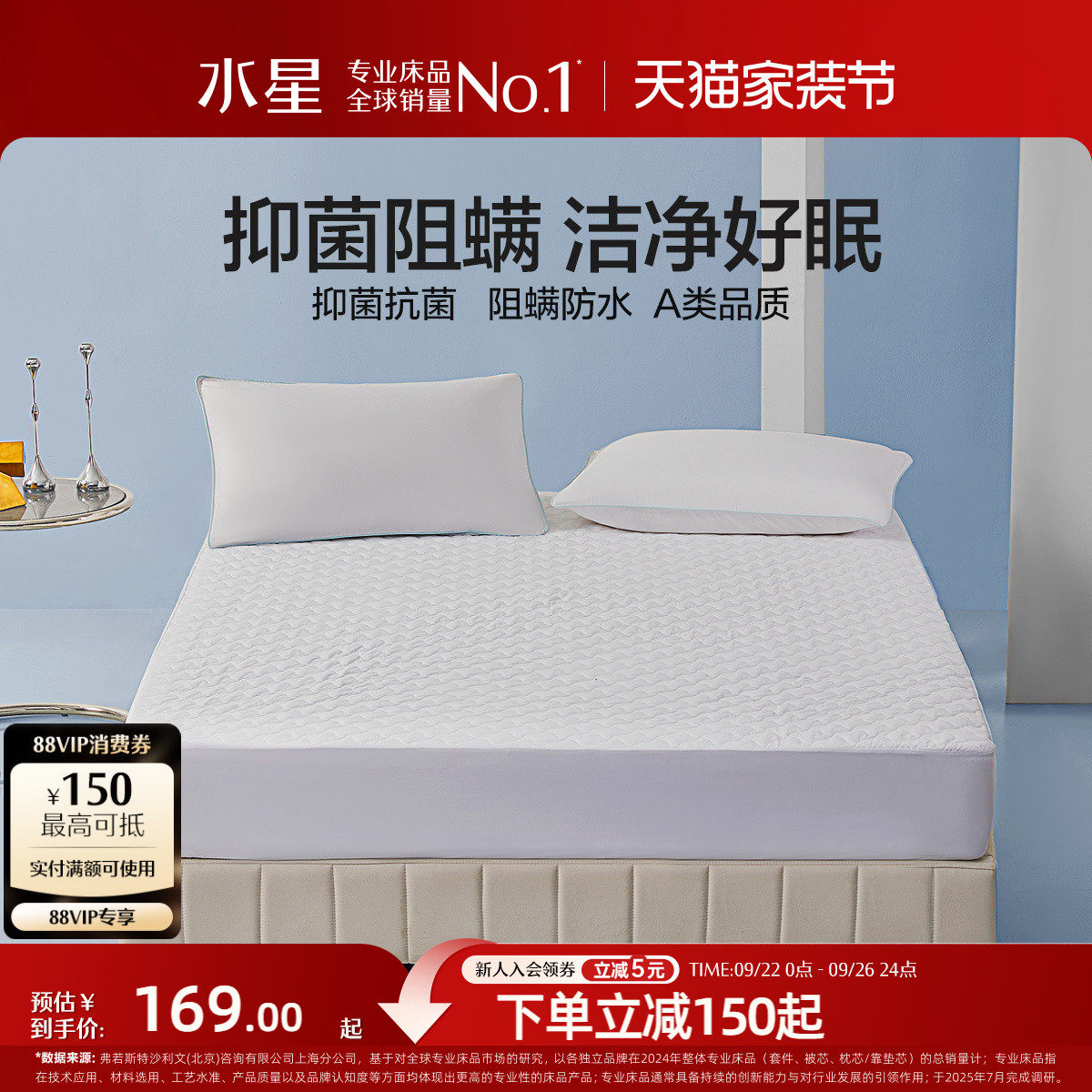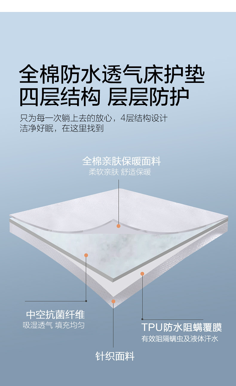 水星 Хлопковый антибактериальный матрас, водонепроницаемый коврик для кровати, защитная подушка, покрывало