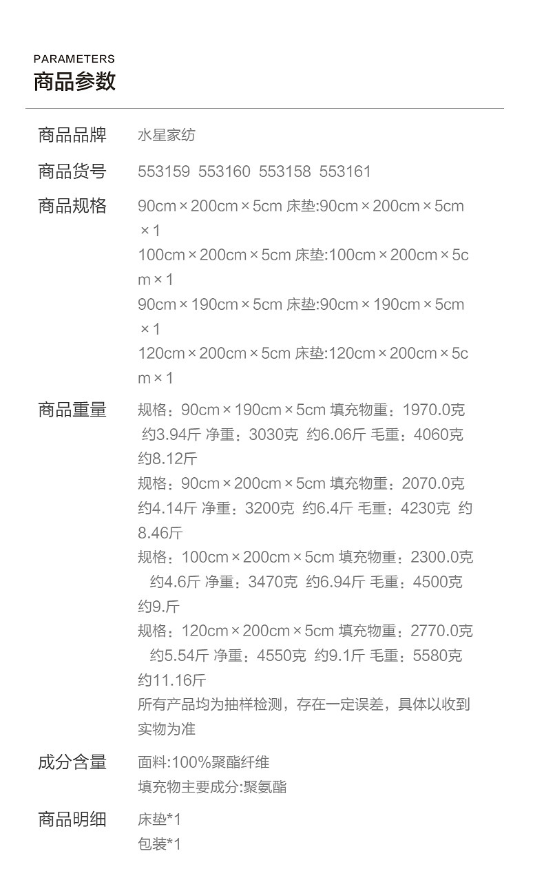 | Классификация цветов: | Матрас - толщиной около 5 см [пена с эффектом памяти с медленным отскоком + антибактериальный материал класса А + дизайн зон] Pre-1, Матрас — толщиной около 5 см [пена с эффектом памяти с медленным отскоком + антибактериальный материал класса А + дизайн зон] до 2, Матрас-около 7 см толщиной [пена медленного отскока для памяти + класс А антибактериальная + зона дизайн] глубокий сон, Матрас-около 10 см толщиной [пена медленного отскока., Наполнитель матраса и подушки [пена с эффектом памяти с медленным отскоком + антибактериальный материал класса А + конструкция перегородок] |