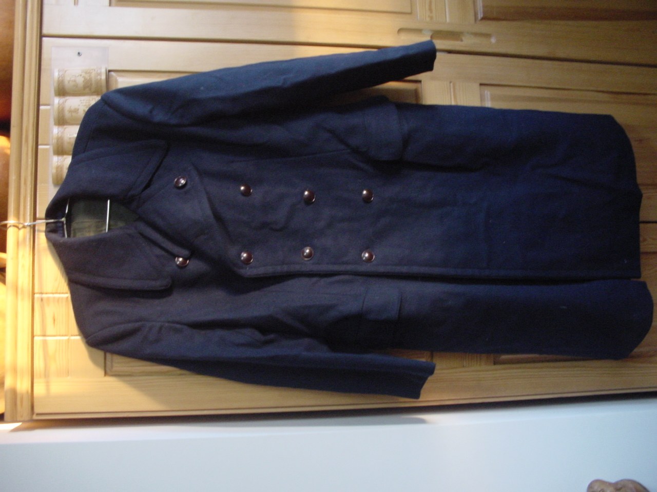 Новый 86 -й кадровую кадровую пальто Hai J U N Lanni, 230 Yuan Bai Ping Mail.Ширина плеча составляет 50, бюст 112, одежда 113, рукава 63.