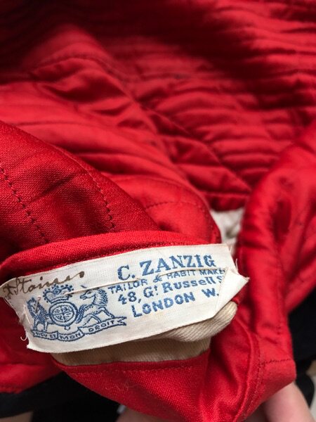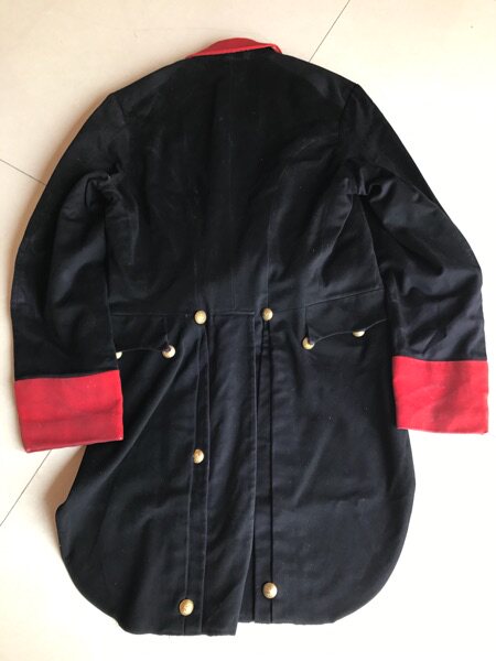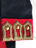 Дворноводный черный черный вырез и манжеты.Воротник, который мы заполнили наполовину золотыми косичками и закончили литой металлической кнопкой в Британском музее Уайона 287 Regent Street с 1837 по 1842 год.