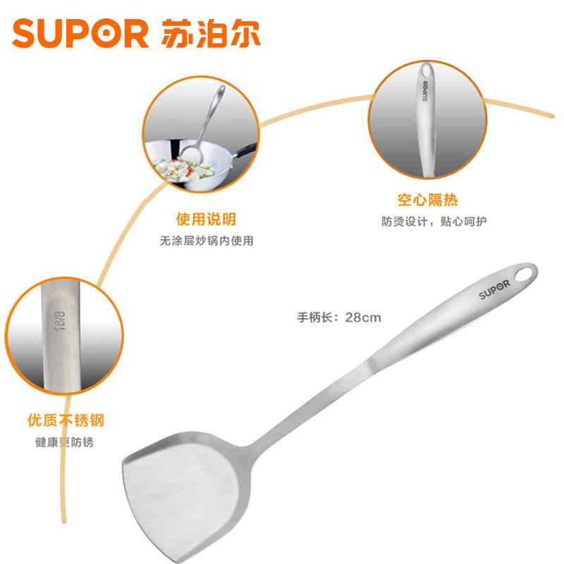 SUPOR CINKING SHOVEL Элегантная серия из нержавеющей стали китайской стиль -лопат -лопата тепло -негулированная лопаточка с длинной ручкой лопаточника