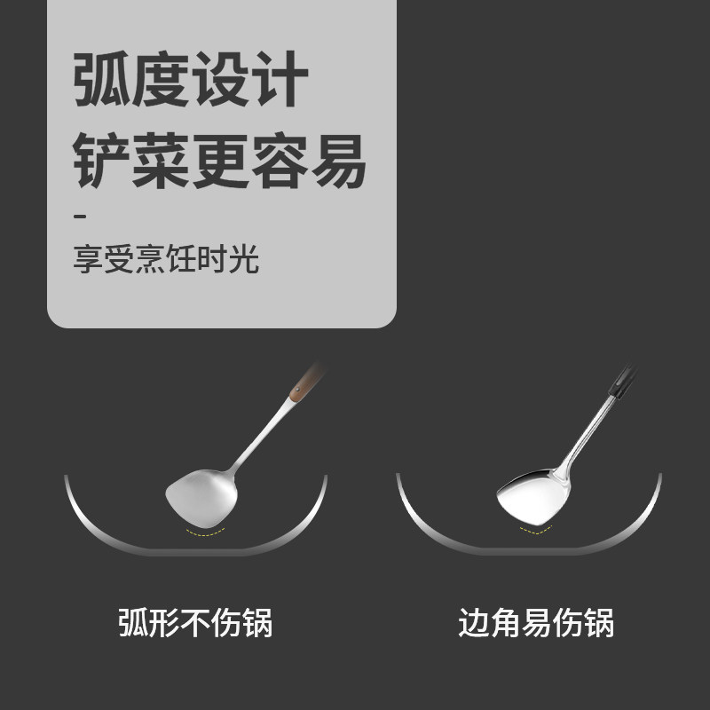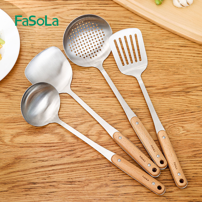 Лопата из нержавеющей стали, кухонная утварь, комплект, деревянная ручка, защита от ожогов