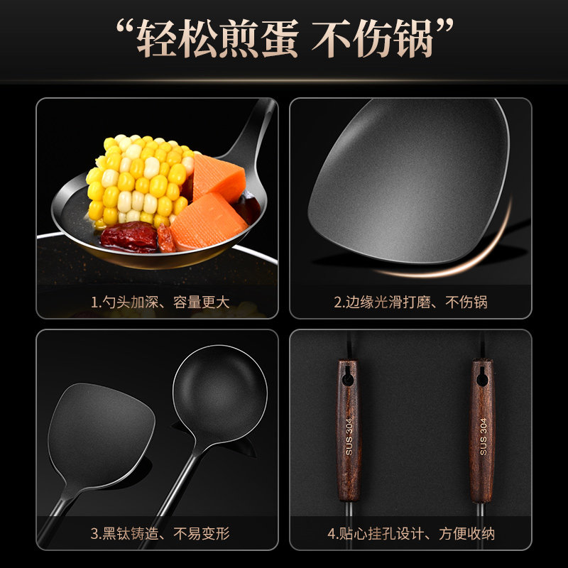 - Черно -плюсная титана 304 Стальная кухня 具 [Spula+Spoon]