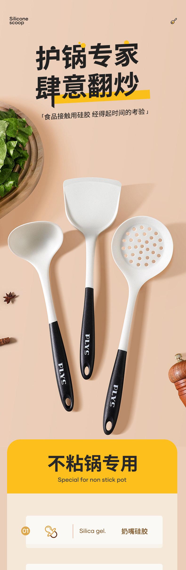 Силиконовый шпатель с неприжирной кастрюль специальной кулинарной лопаточ