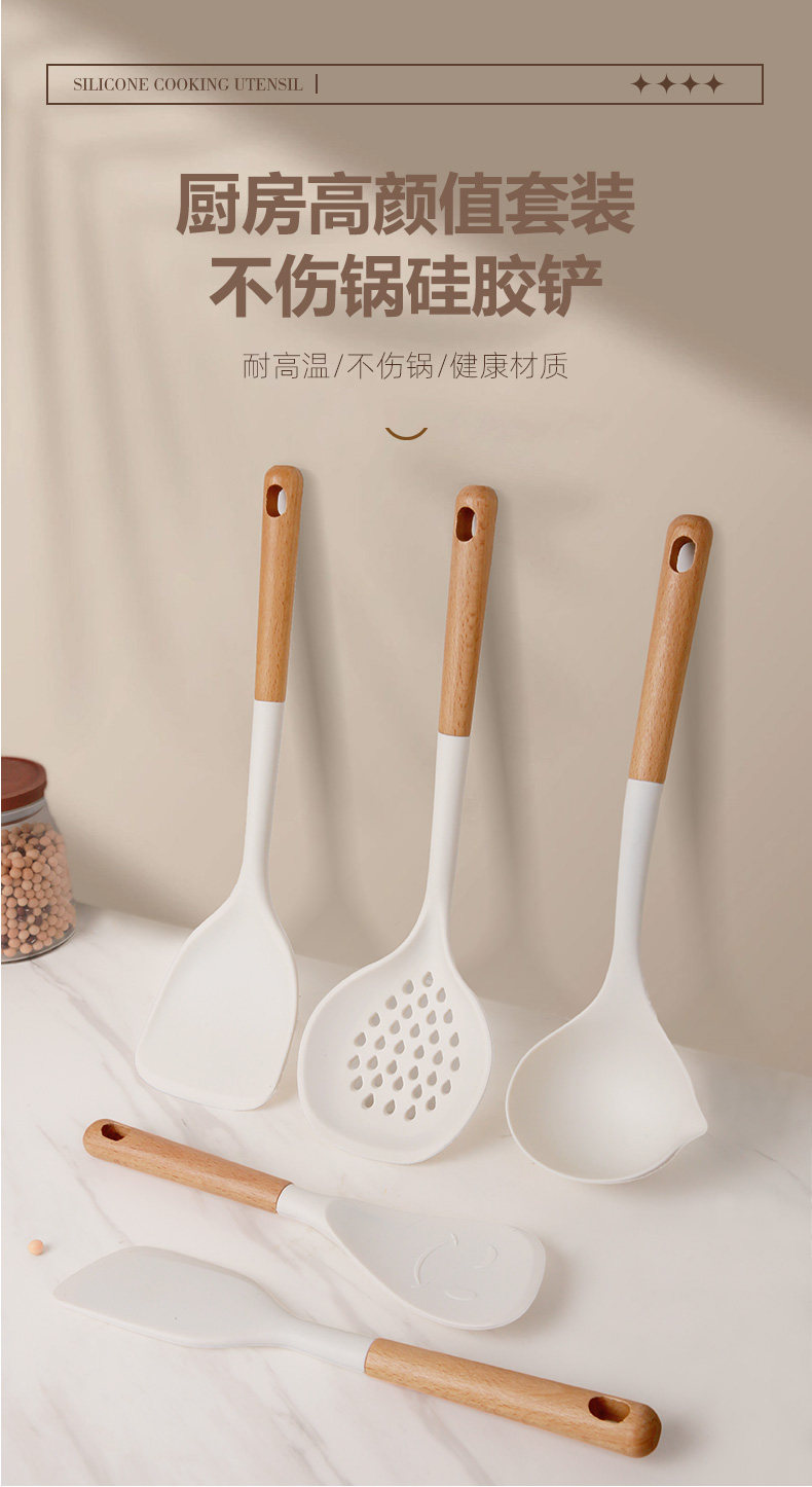 原森太 Силиконовая лопаточка жареная лопатка бытовая жареная ложка, не пана, специальная суп-ложка, ложка, колонна, набор кухонная посуда