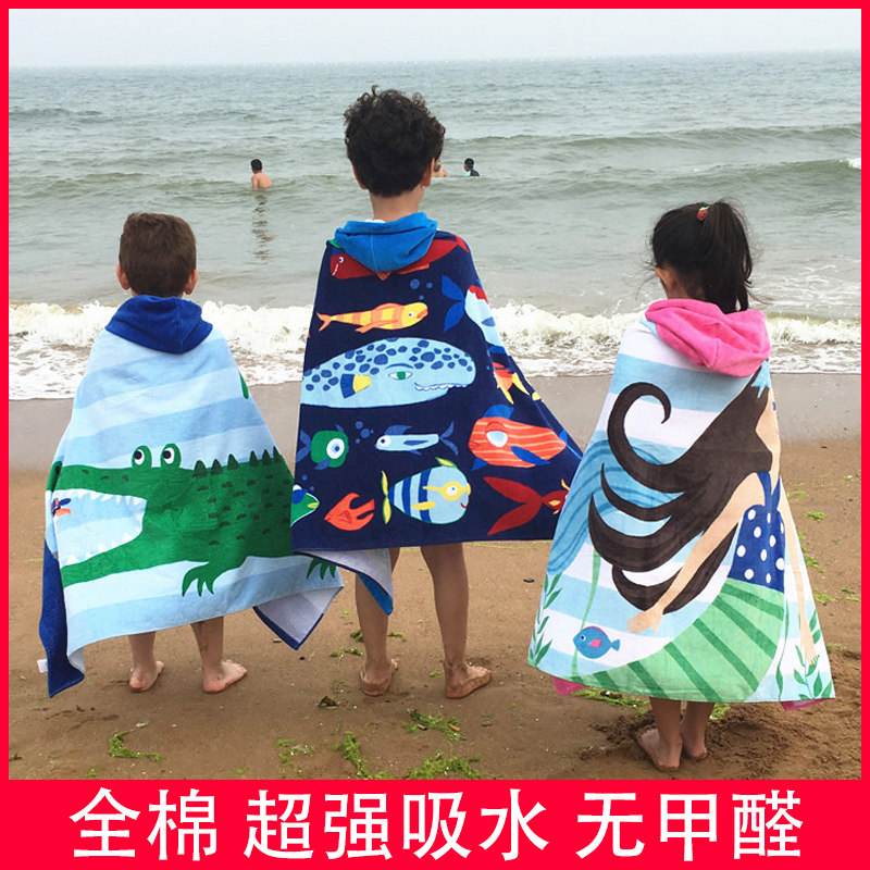 Детское банное полотенце, хлопковый плащ, пляжный быстросохнущий банный халат для плавания, увеличенная толщина, хорошо впитывает воду