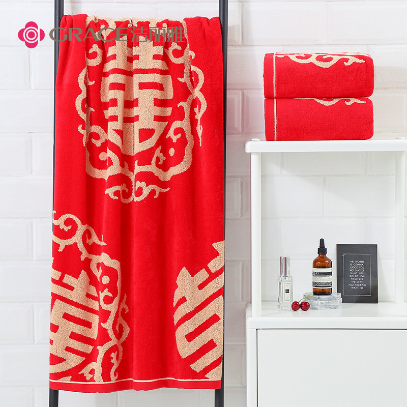 Хлопковое красное мягкое праздничнное банное полотенце, хорошо впитывает воду, подарок на день рождения