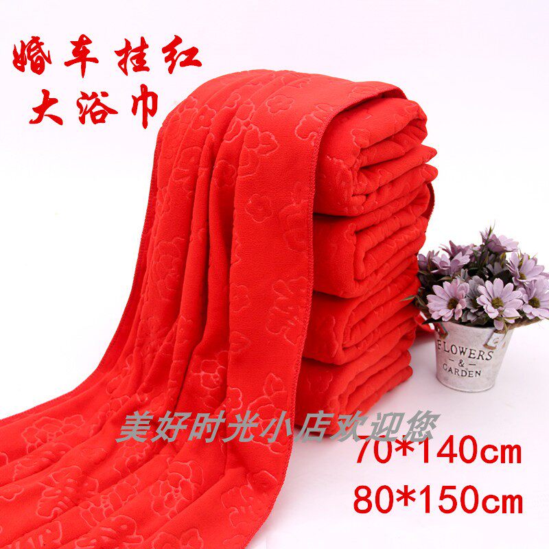 Большой красный hi -character bath Полотенце супер мелкое волокно свадебное автомобиль висят красный свадебный свадебный подарок возвращающий жених жених цветочный автомобиль Большое полотенце большое полотенце