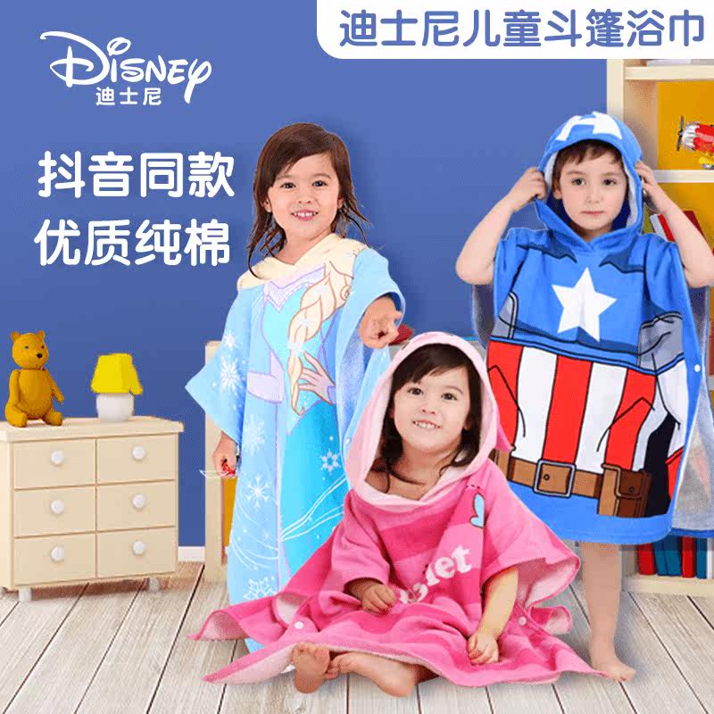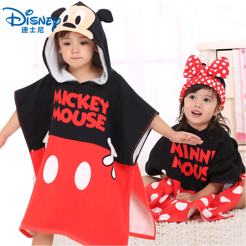 Дисней, детское хлопковое банное полотенце с капюшоном, детский плащ, мультяшный банный халат