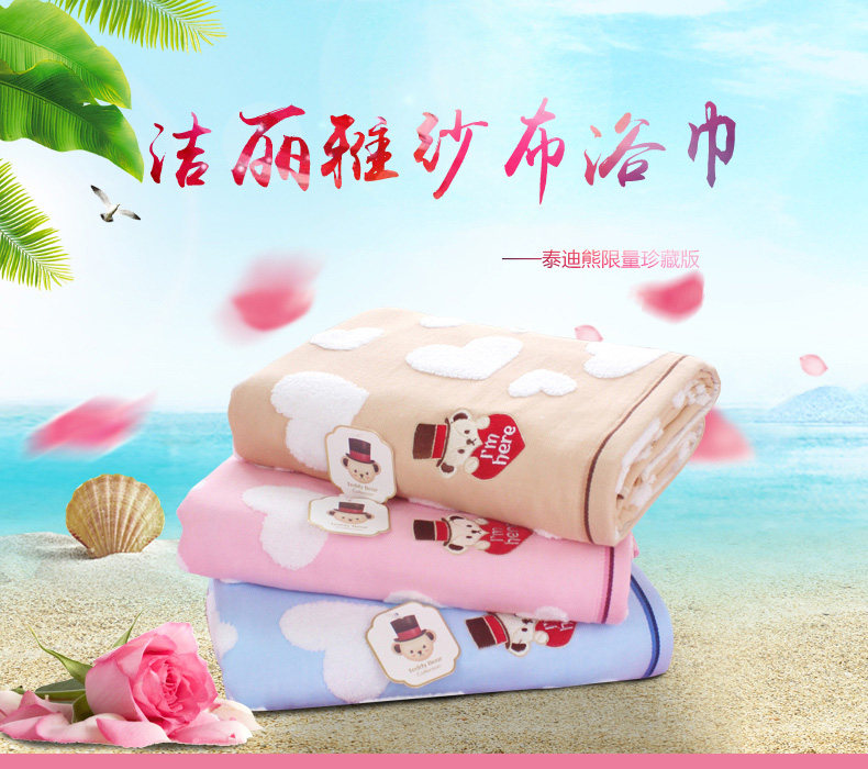 Хлопковое марлевое мультяшное мягкое банное полотенце подходит для мужчин и женщин, для влюбленных, хорошо впитывает воду