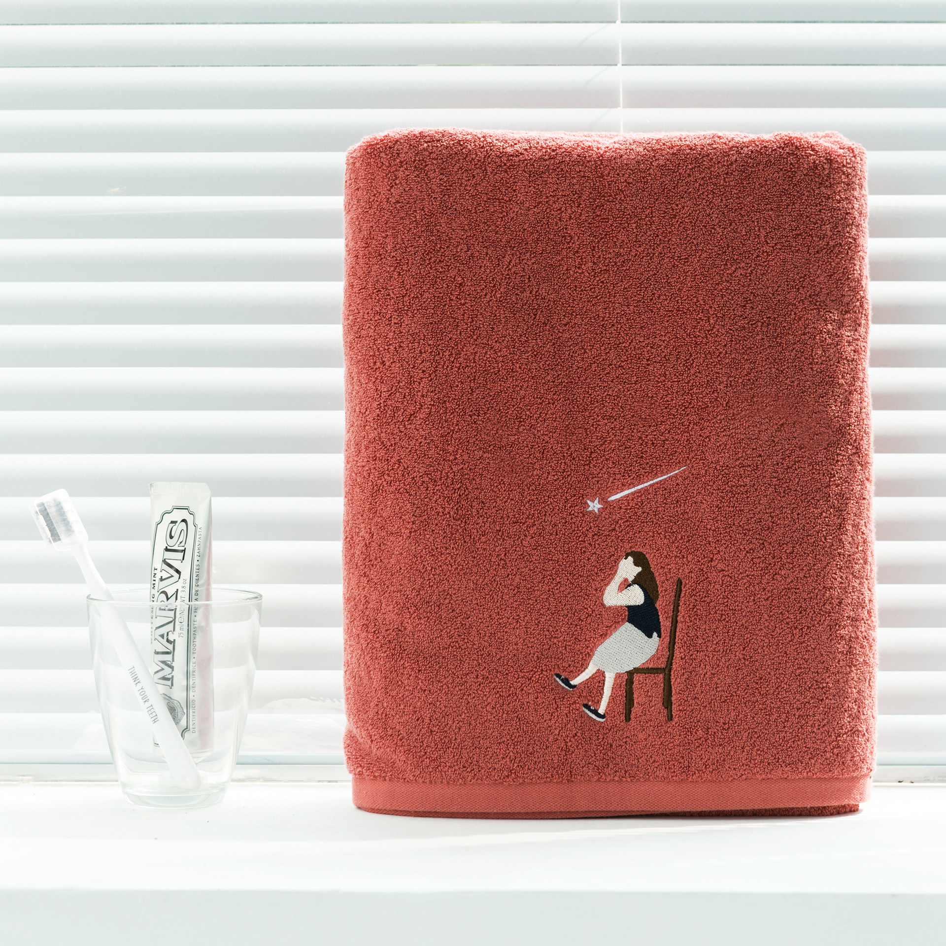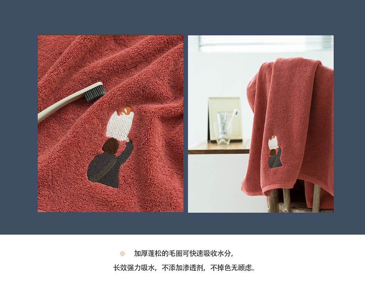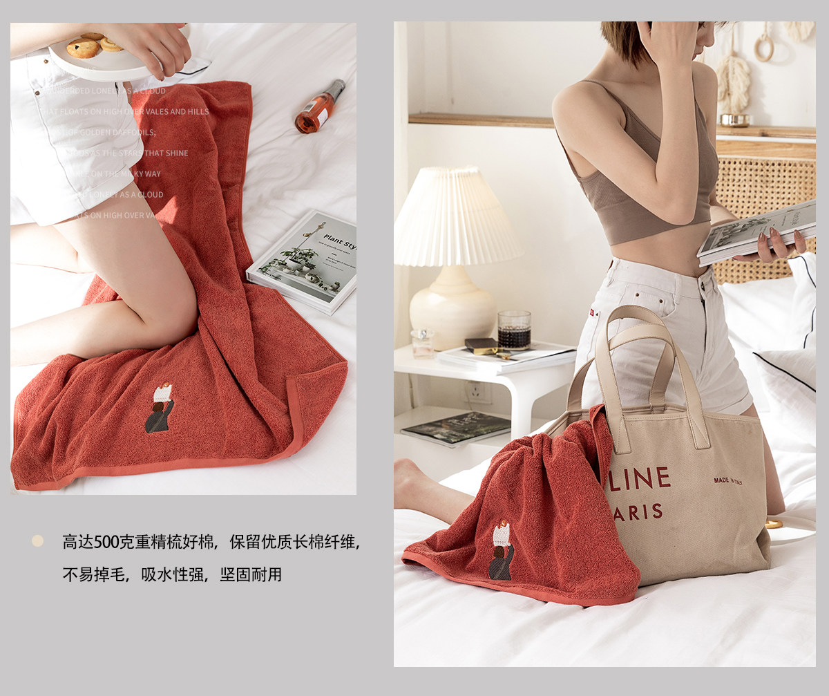 Оригинальное красное мягкое хлопковое банное полотенце, с вышивкой, увеличенная толщина, хорошо впитывает воду