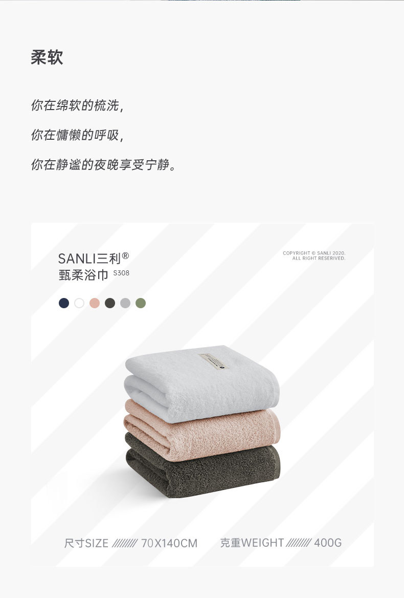 三利 Хлопковое банное полотенце для взрослых, быстросохнущий хлопковый комплект, хорошо впитывает воду, 3 предмета
