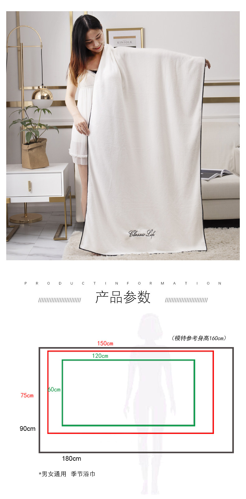 60*120 Подходит для вытирания после купания, мужчины обернули нижнюю часть тела, дети, использованные детьми Осада взрослых мужчин 90 Взрослая леди выбран 75