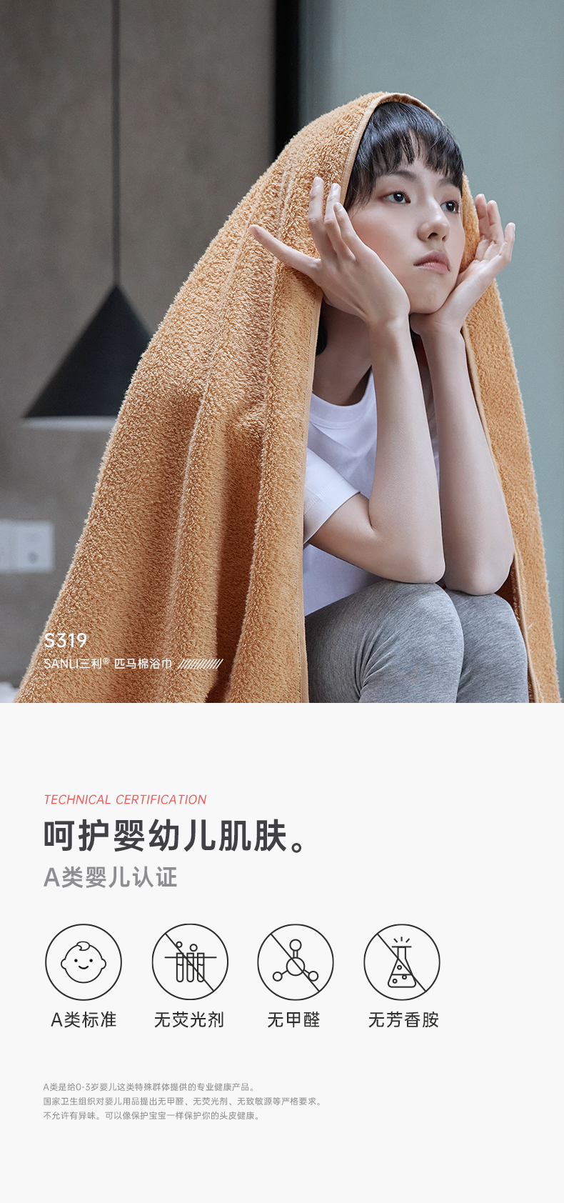 三利 Антибактериальное хлопковое большое быстросохнущее банное полотенце подходит для мужчин и женщин, увеличенная толщина, хорошо впитывает воду
