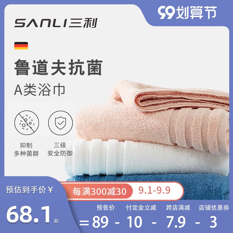 三利 Антибактериальное хлопковое быстросохнущее банное полотенце подходит для мужчин и женщин, хорошо впитывает воду, увеличенная толщина, для влюбленных