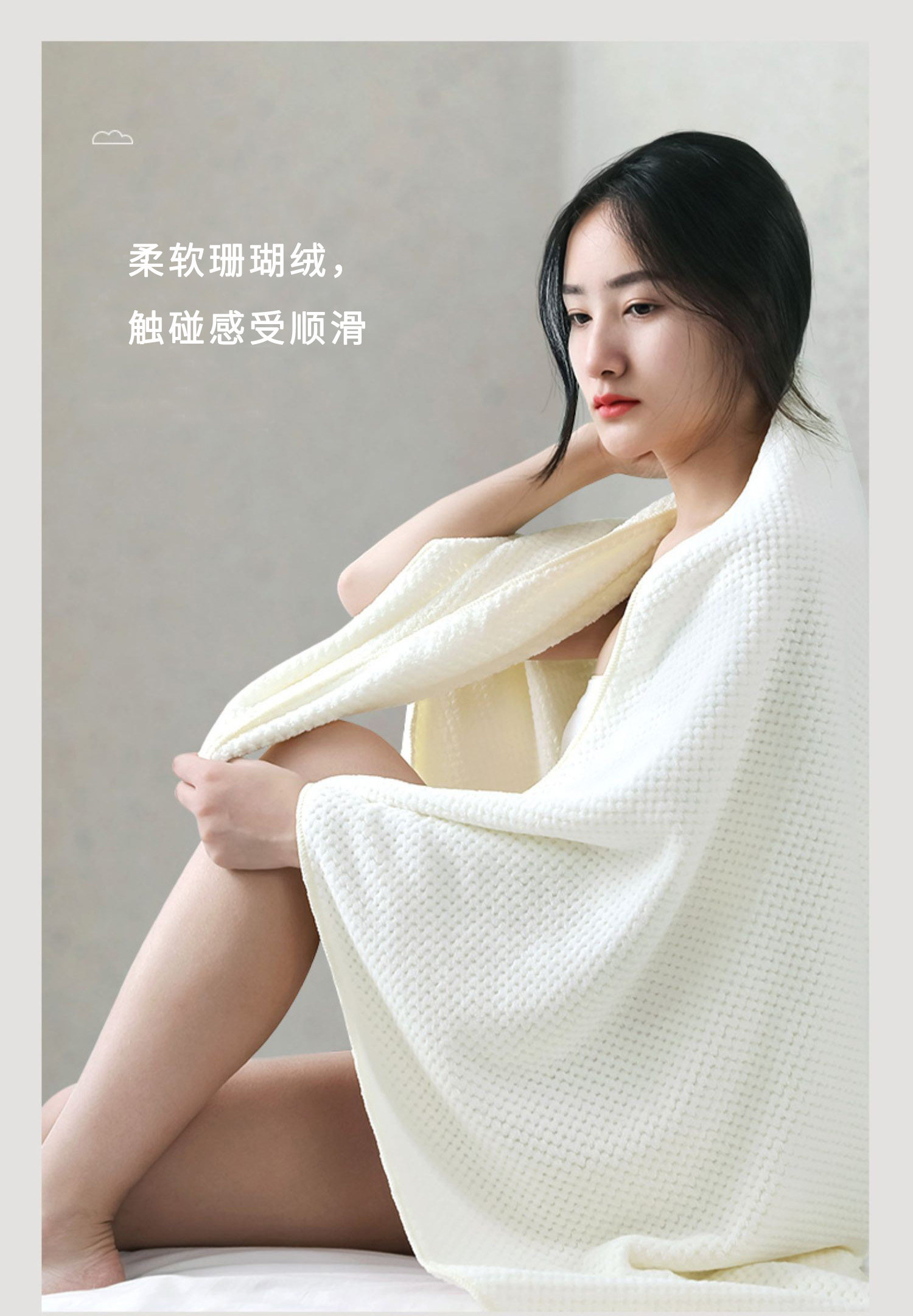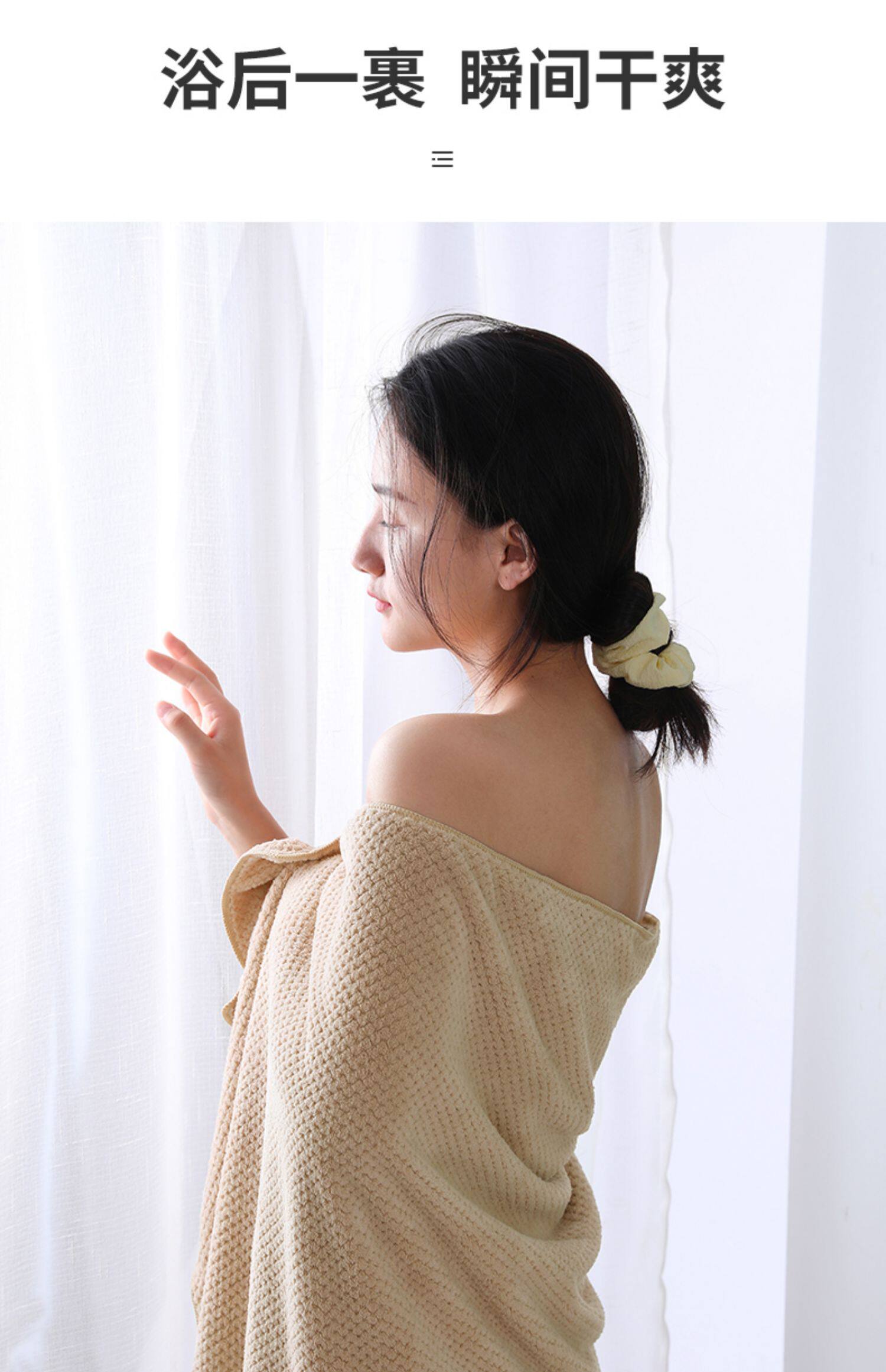 - Бежевое банное полотенце, полотенце для волос