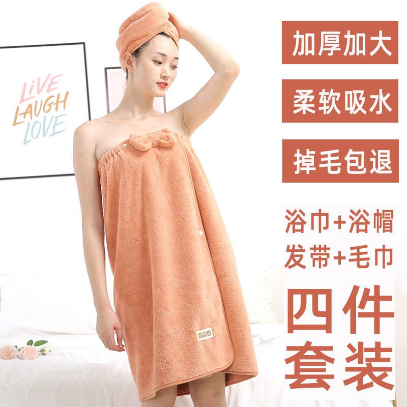 Банное полотенце, шапочка для душа, хлопковый тонкий комплект, хорошо впитывает воду
