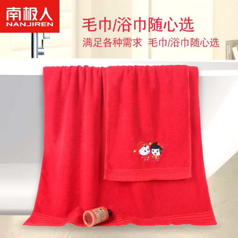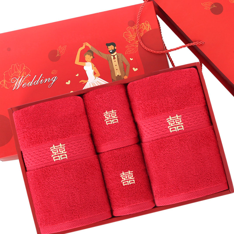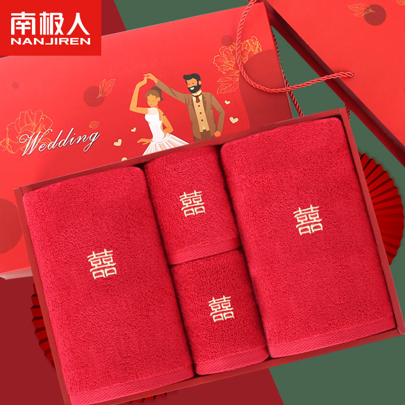 南极人 Банное полотенце, красный комплект, подарочная коробка, 4 предмета, для влюбленных, 3 предмета