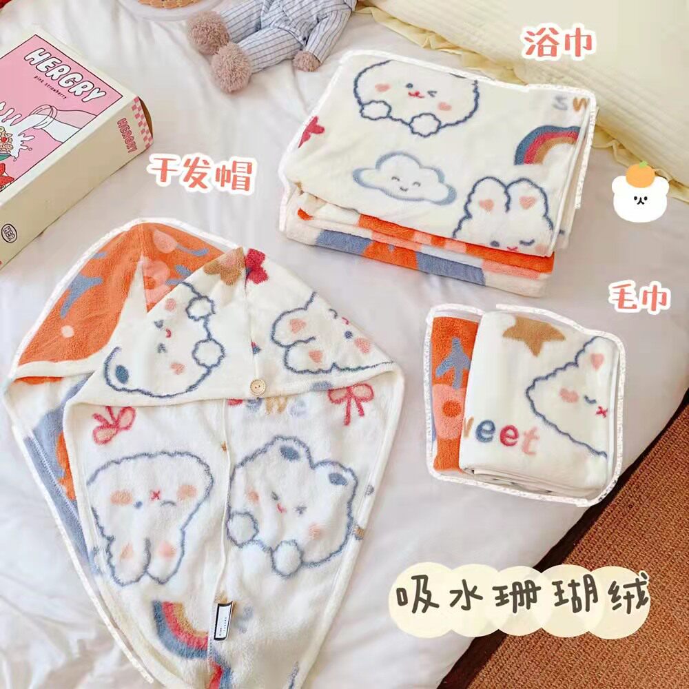 Милое банное полотенце, быстросохнущее полотенце для волос, коралловый бархатный комплект, банный халат, хорошо впитывает воду, 3 предмета